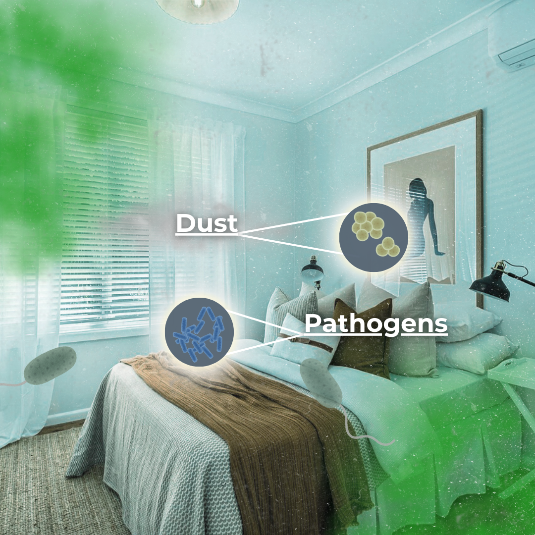 PurePod draws in polluted air from all directions, capturing dust, smoke, pollen, and invisible particles floating around your room.